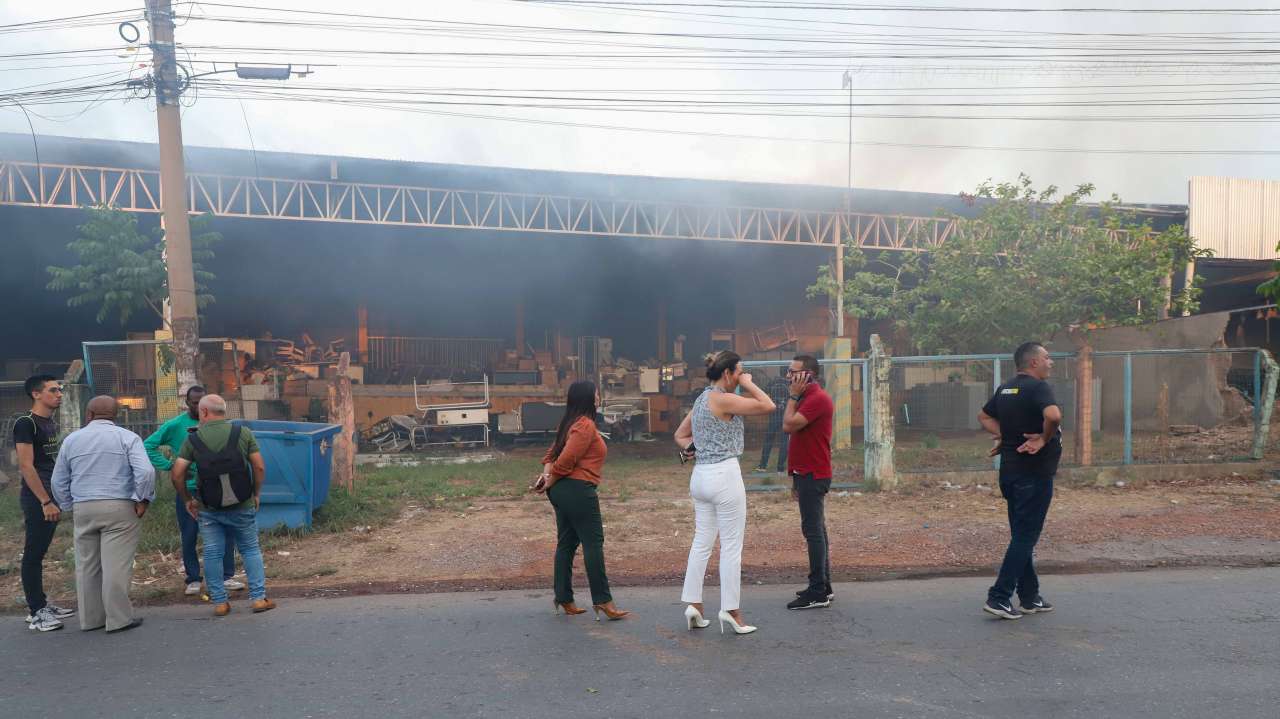 O fogo começou por volta das 16h10, na parte externa rente ao muro do imóvel, e rapidamente se alastrou para o interior do galpão, destruindo todo o material armazenado no local.