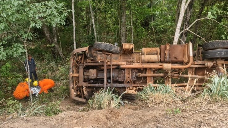 Segundo o relato do motorista do caminhão, ele seguia pela rodovia acompanhado de outros dois ocupantes quando, ao tentar ultrapassar outro veículo, perdeu o controle da direção, atravessando a pista e caindo em uma ribanceira.