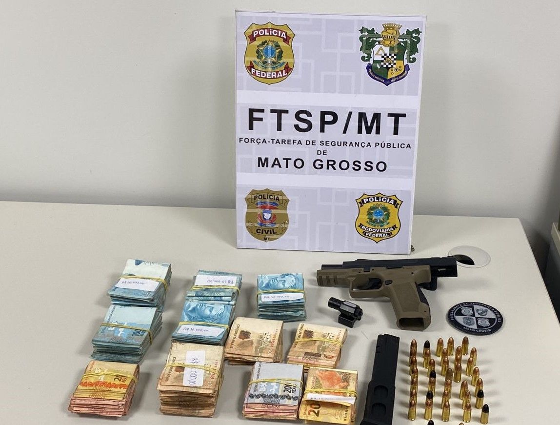 A polícia prendeu duas pessoas com mandados de prisão em aberto e durante as buscas encontrou uma pistola Glock com carregador estendido que comporta 30 munições, R$75 mil em espécie e jóias.