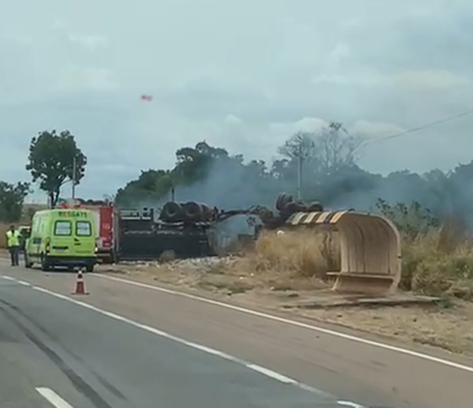 Um motorista de caminhão, ainda não identificado, morreu na manhã desta segunda-feira (13) após um acidente na BR-364, no município de Jaciara. O veículo de carga, que transportava pedras, saiu da pista e pegou fogo. A vítima, que estava sozinha no veículo, foi encontrada sem vida dentro da cabine.