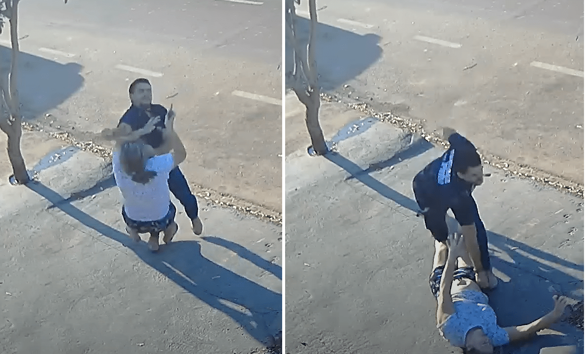 Câmeras de segurança mostram o momento exato onde um empresário do ramo automobilístico agride a vizinha com um soco no rosto após discutiram, em Sinop (500 km ao norte de Cuiabá). Após agredir a vizinha, foi deflagrada e cumprido pela Polícia Civil uma operação e o mandado de busca e apreensão na casa do agressor. Além disso foi imposta medida cautelar que impede o suspeito de aproximar da vítima.