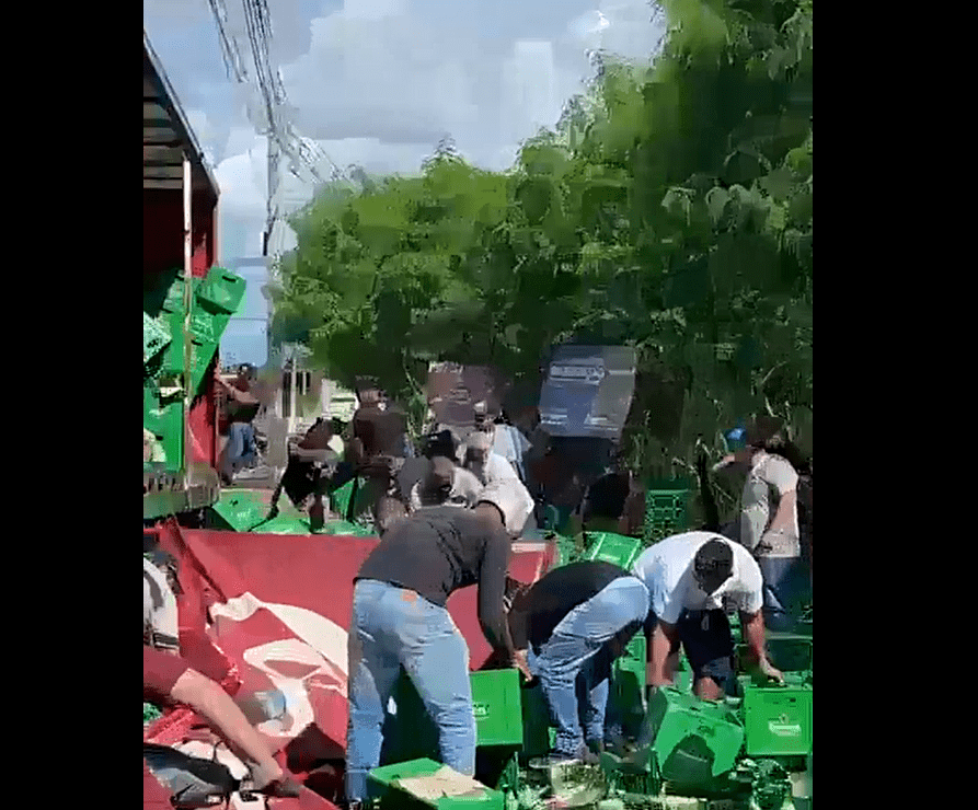 Um caminhão carregado de cerveja Heineken tombou na tarde desta terça-feira (15.02) no trevo da Ponte Nova, localizado na Avenida Miguel Sutil, em Cuiabá. Em questão de minutos, pessoas que passavam pelo local aproveitaram para saquear a bebida alcoólica, que ficou espalhado pela avenida.