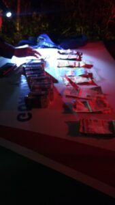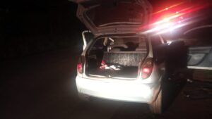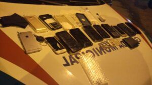 Os indivíduos seguiam para a região do Pirineu onde a viatura da GM em deslocamento para a região se deparou com o veículo informado. Foi feito sinal sonoro e luminoso de parada para abordagem e os mesmos obedeceram e com eles foram encontrado vários objetos de produto de roubo (celulares, cartões e capas de celulares).
