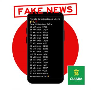 A Prefeitura Municipal de Cuiabá, por meio da Secretaria Municipal de Saúde (SMS) decidiu paralisar nesta quarta-feira (24) a imunização da covid-19, por conta de uma imagem que circulou nas redes sociais com calendário falso sobre a vacinação.