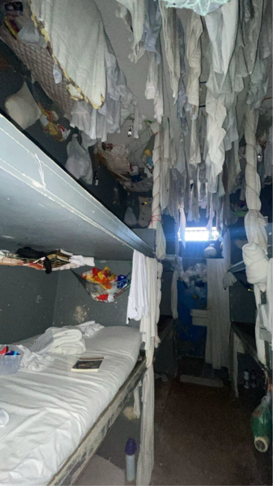 De acordo com o documento, o cenário de superlotação e condições precárias se repete em outras celas, inclusive com reeducandos forçados a dormir no chão de concreto, sem colchões.
