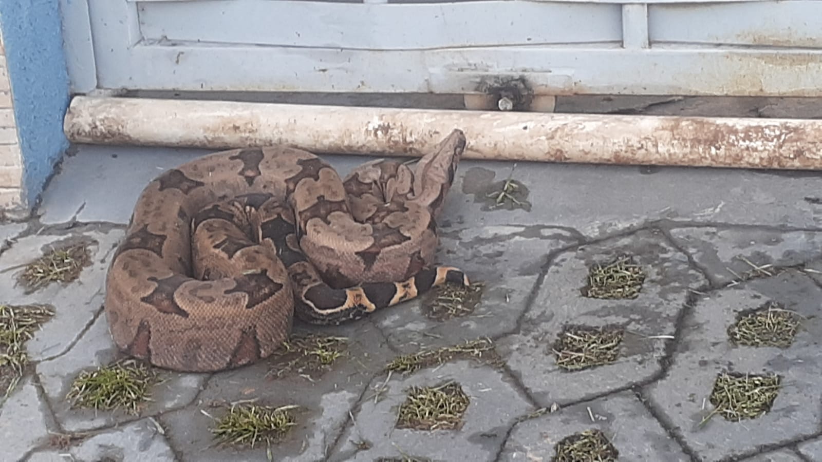 Mais uma cobra foi localizada na área urbana na grande Cuiabá em apenas 10 dias. A terceira foi encontrada na segunda-feira (3) em frente a uma residência no bairro Parque Universitário, na região do Coxipó, em Cuiabá.