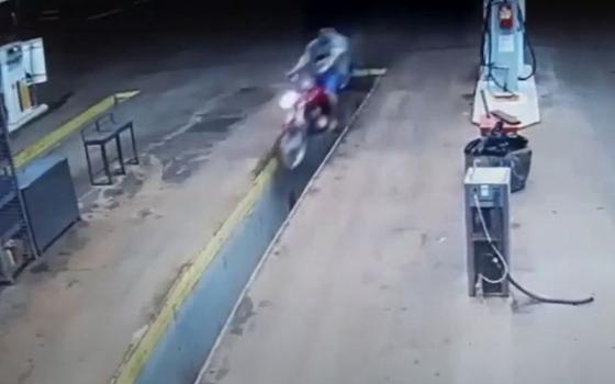 As imagens das câmeras de segurança, registraram o momento em que o homem invade o estabelecimento e cai em um buraco que fica entre as bombas de combustíveis do posto.