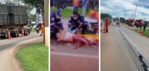 Uma mulher identificada como Maria Aparecida Gomes, de 56 anos, morreu após ser atropelada por um caminhão na tarde desta segunda-feira (5), na BR-070, em