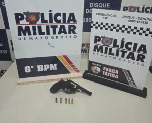 Policiais militares do 6º Batalhão apreenderam, nesta segunda-feira (9), um adolescente e prenderam um homem, suspeitos por porte ilegal de arma de fogo, em Cáceres