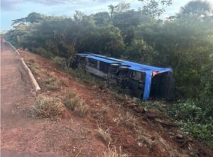 Duas pessoas, ainda não identificadas, morreram após o tombamento de um ônibus na madrugada desta terça-feira (24), no km 680 da BR-158, entre o distrito