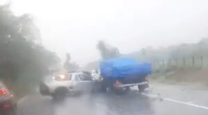 Um motorista e o passageiro de uma picape morreram após o veículo atingir uma árvore durante a chuva na tarde desta sexta-feira (28) próximo a