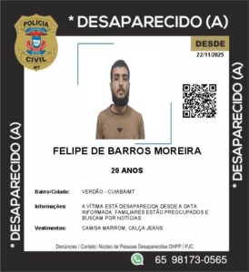 A família de Felipe de Barros Moreira, de 20 anos, procura pelo jovem que está desaparecido desde o início da tarde de sábado (22), em