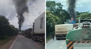 Um motorista, ainda não identificado, morreu na tarde de quinta-feira (12) após um grave acidente envolvendo três carretas no km 506 da BR-364, no município
