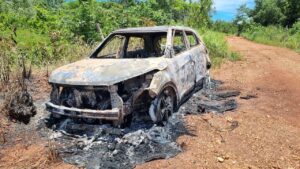 Um veículo Hyundai Creta foi encontrado queimado na manhã desta quinta-feira (29), em uma estrada de terra nas proximidades do distrito de Jangada. O carro