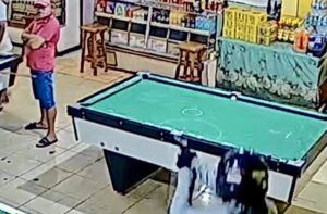Câmera do circuito interno de segurança registrou o momento em que Rodrigo Belarmino Fulgencio, de 40 anos, foi morto a tiros dentro de um bar,