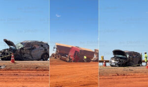 Motorista morre em batida entre duas carretas e carro na BR-163
