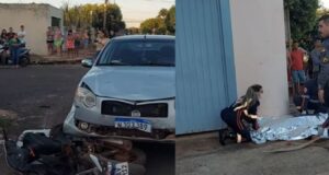 Mulher fura preferencial e passageira morre em batida entre motocicleta e carro