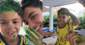 A influenciadora Gabriela Versiani, 26, mostrou um momento de diversão nesta segunda-feira (16) com o enteado Léo, 5, filho de Murilo Huff, 29, e da cantora Marília Mendonça (1995-2021). “Gabi, vem