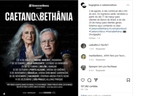 Os cantores Caetano Veloso e Maria Bethânia anunciaram que irão fazer uma série de shows juntos pelo país no segundo semestre de 2024. A turnê terá início em agosto e passará por diversas capitais brasileiras, como São Paulo, Rio de Janeiro, Belo Horizonte, Belém, Porto Alegre, Brasília e Salvador. De acordo com o cronograma divulgado recentemente, a primeira apresentação dos irmãos está marcada para o dia 3 de agosto, na cidade do Rio de Janeiro. O encerramento da turnê acontecerá em São Paulo, no dia 14 de dezembro. Os artistas compartilharam a novidade em suas redes sociais, confirmando o retorno da parceria em uma turnê que promete percorrer todo o Brasil. Os ingressos para os shows estarão disponíveis a partir do dia 17 de março para clientes do Banco do Brasil e a partir do dia 20 para o público em geral. A expectativa é de que a união de Caetano Veloso e Maria Bethânia nos palcos resulte em apresentações memoráveis e emocionantes para os fãs de música popular brasileira.