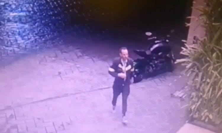 Imagens de câmeras de segurança mostram o suspeito chegando ao local de um dos furtos de motocicleta e, depois, removendo um quadro da parede.